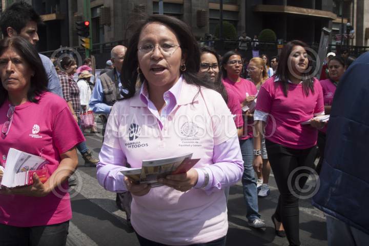 MÉXICO, D.F., 08MARZO2013.- Las Diputada, Rosa Icela Rodríguez y Tania Müller, miembros de la Comisión de Equidad y Género de la ALDF, repartieron volantes en el primer cuadro de la ciudad,con motivo del Día Internacional de la Mujer y dentro del programa violentómetro que busca concientizar a las mujeres sobre relaciones destructivas y violentas. FOTO: FRANCISCO RODRÍGUEZ /CUARTOSCURO.COM