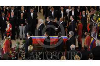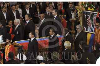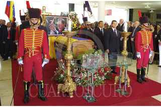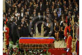 CARACAS, VENEZUELA, 08MARZO2013.- Durante las exequias de Estado en honor del Presidente de Venezuela, Hugo Rafael Chávez Frías, el Presidente de la República, Enrique Peña Nieto, realizó una guardia de honor acompañado de Portia Simpson-Miller, Primera Ministra de Jamaica; Ricardo Martinelli, Presidente de Panamá; Ollanta Humala, Presidente de Perú; Kenneth Anthony, Primer Ministro de Santa Lucía; Denzil Douglas, Primer Ministro de San Cristóbal y Nieves; Desiré Delano Bouterse, Presidente de Surinam; José Mujica, Presidente de Uruguay; y el Príncipe de Asturias, Felipe de Borbón, representante de la Monarquía española. FOTO: PRESIDENCIA /CUARTOSCURO.COM