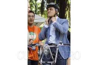 MÉXICO, D.F., 10MARZO2013.- El Jefe de Gobierno del Distrito Federal, Miguel Angel Mancera, encabezó un recorrido por el Mercado de Trueque y de reciclaje, ubicado en la primera sección del Bosque de Chapultepec, para trasladarse después en bicicleta al evento "Ciclo Ciudades", el cual contó con la participación del embajador de los Paises Bajos, Dolf Hogewoning. FOTO: PEDRO ANZA /CUARTOSCURO.COM