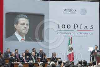 MÉXICO, D.F., 10MARZO2013.- Enrique Peña Nieto, presidente de México, dio un mensaje a la nación durante el evento conmemorativo a los 100 días de gobierno de la actual administración en el Palacio Nacional. FOTO: IVÁN STEPHENS /CUARTOSCURO.COM