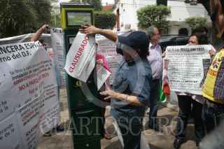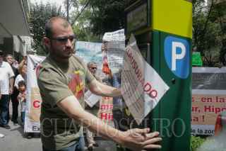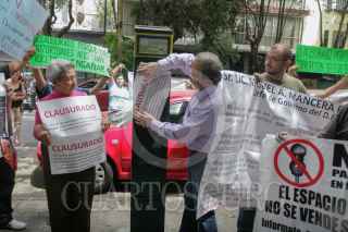 MÉXICO, D.F. 10MARZO2013.- Vecinos de las Colonias Roma y Condesa clausuraron simbólicamente los parquímetros instalados para comenzar a funcionar mañana, llamaron a que se retiren pues aseguran ellos ganaron con el "no" en la pasada consulta realizada por la delegación Cuauhtémoc. FOTO: JUAN PABLO ZAMORA /CUARTOSCURO.COM