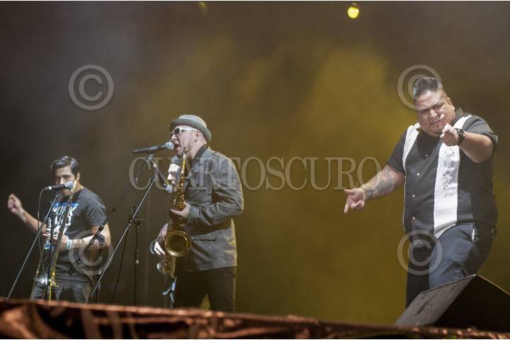 ECATEPEC, ESTADO DE MÉXICO, 10MARZO2013.- El grupo de ska Panteón Rococo, durante su participación en el festival musical "Corona Music Fest". FOTO: DIEGO SIMÓN SÁNCHEZ /CUARTOSCURO.COM