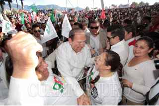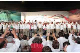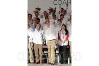 SALTILLO, COAHUILA, 09MARZO2013.- Los candidatos a alcaldes del Partido Revolucionario Institucional de los 38 municipios de Coahuila, tomaron protesta esta tarde ante aproximadamente 5 mil militantes y teniendo como invitados al Gobernador del Estado, Rubén Moreira Valdez y el dirigente nacional del PRI, Cesar Camacho Quiróz, en el marco de la XX Sesión Extraordinaria del Consejo Estatal del PRI. FOTOS: KARLA ITZEL RUIZ/CUARTOSCURO.COM