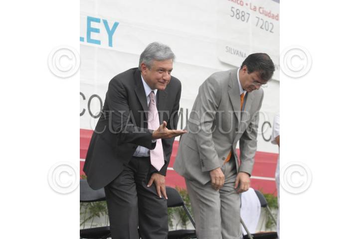 MEXICO, D.F. 26JULIO2005.- Andrés Manuel López Obrador, jefe de Gobierno capitalino, se despide de sus simpatizantes, mientras un adulto mayor le muestra una pancarta en pro de la eutanasia, al tèrmino de la entrega de tarjetas de pensiones. FOTO: Sandra Perdomo/CUARTOSCURO.COM