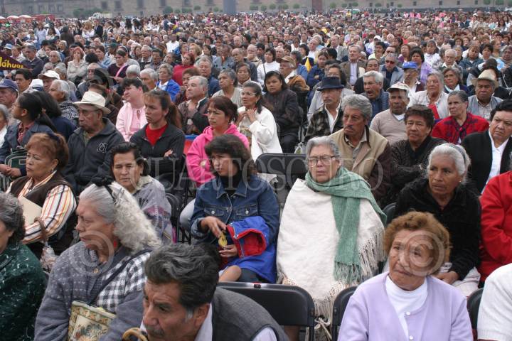 MEXICO, D.F. 26JULIO2005.- Andrés Manuel López Obrador, jefe de Gobierno capitalino, se despide de sus simpatizantes, mientras un adulto mayor le muestra una pancarta en pro de la eutanasia, al tèrmino de la entrega de tarjetas de pensiones. FOTO: Sandra Perdomo/CUARTOSCURO.COM