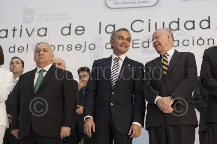 MÉXICO, D.F., 12MARZO2013.- Emilio Chuayffet, secretario de Educación Pública, Miguel Ángel Mancera, Jefe de Gobierno, y José Narro Robles, rector de la UNAM, durante la presentación la Agenda Educativa 2013-2018. FOTO: MOISÉS PABLO /CUARTOSCURO.COM