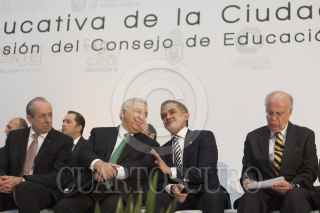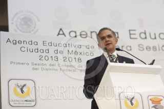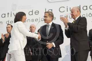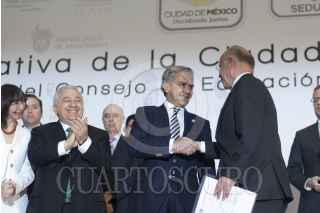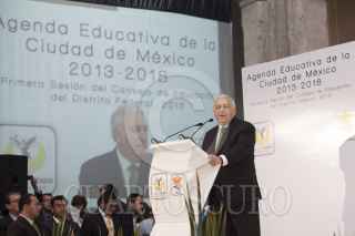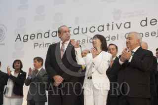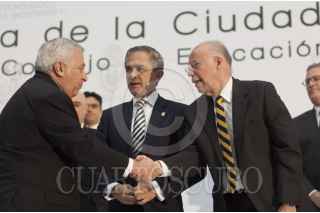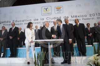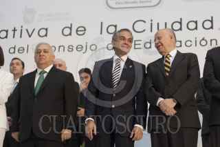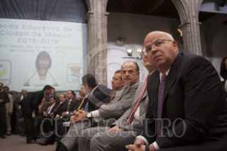 MÉXICO, D.F., 12MARZO2013.- Emilio Chuayffet, secretario de Educación Pública, Miguel Ángel Mancera, Jefe de Gobierno, y José Narro Robles, rector de la UNAM, durante la presentación la Agenda Educativa 2013-2018. FOTO: MOISÉS PABLO /CUARTOSCURO.COM