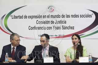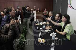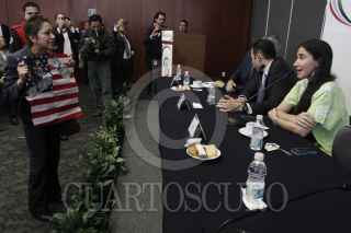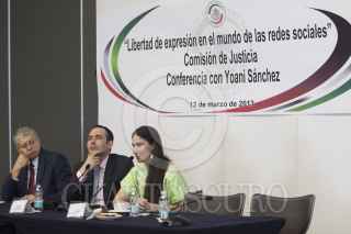 MÉXICO, D.F., 12MARZO2013.- Durante la participación de la bloguera cubana Yoani Sánchez en el foro "Libertad de expresión en el mundo de las redes sociales", personas que apoyan el régimen castrista de la isla de Cuba se manifestaron por la presencia de esta activista, quien a criticado la falta de libertad de expresión en su país, acusándola de ser financiada por la CIA, órgano de inteligencia y espionaje de los Estados Unidos. FOTO: MOISÉS PABLO /CUARTOSCURO.COM