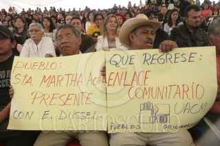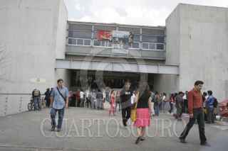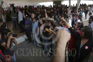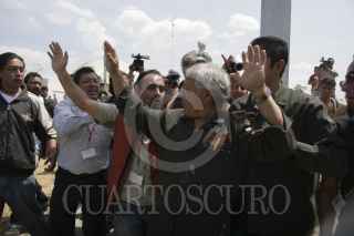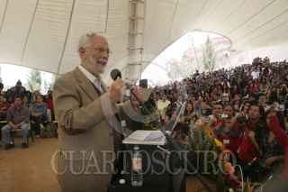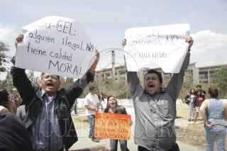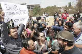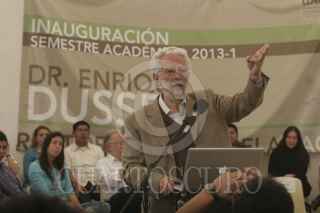MÉXICO, D.F., 12MARZO2013.-El Rector Interino de la Universidad Autónoma de la Ciudad de México (UACM), Doctor Enrique Dussel, se presentó en el auditorio denominado "El Ágora" en donde inaguró el semestre 2013-1. Ahí alrededor de 10 personas, simpatizantes de Esther Orozco, irrumpieron con pancartas y gritando consignas en contra del recien nombrado encargado interino de la Rectoría. Acto seguido varios asistentes al acto los sacaron entre empujones y gritos a favor. FOTO: JUAN PABLO ZAMORA /CUARTOSCURO.COM