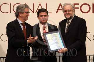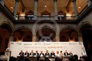 MONTERREY, NUEVO LEÓN, 13MARZO2013.- El premio internacional Alfonso Reyes 2012 fue otorgado al filósofo y lingüista español Ignacio Bosque Muñoz en manos del gobernador del estado Rodrigo Medina. El reconocimiento fue creado en1972 siendo Jorge Luis Borges el primero en recibirlo, también Octavio Paz en 1985, entre otros. En la entrega estuvieron presentes los rectores de las principales universidades de Nuevo León, así como autoridades de cultura en la entidad. FOTO: GABRIELA PÉREZ MONTIEL / CUARTOSCURO.COM