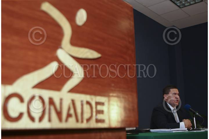 MÉXICO, D.F., 14MARZO2013.- Jesús Mena Campos, director general de la CONADE, durante la conferencia ofrecida ante los representantes de los medio de comunicación, en el Auditorio de la Dirección General de la Comisión Nacional de Cultura Física y Deporte. FOTO: CUARTOSCURO.COM