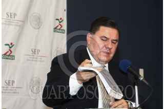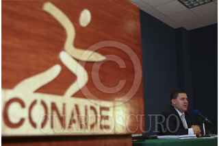 MÉXICO, D.F., 14MARZO2013.- Jesús Mena Campos, director general de la CONADE, durante la conferencia ofrecida ante los representantes de los medio de comunicación, en el Auditorio de la Dirección General de la Comisión Nacional de Cultura Física y Deporte. FOTO: CUARTOSCURO.COM
