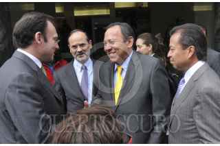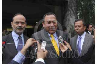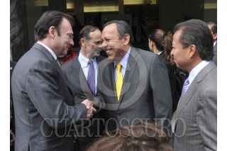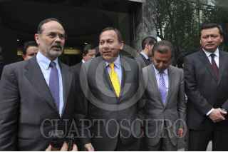 MÉXICO, D.F., 14MARZO2013.- Luis Videgaray, Secretario de Hacienda y Crédito Público; Gustavo Madero, presidente nacional del Partido Acción nacional (PAN); Jesús Zambrano Grijalva, presidente nacional del Partido de la Revolución Democrática (PRD); y César Camacho Quiroz, presidente nacional del Partido Revolucionario Institucional (PRI); al finalizar la reunión en la que Jesús Zambrano Grijalva asumió la presidencia del Consejo Rector del pacto por México. FOTO: CUARTOSCURO.COM