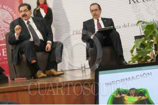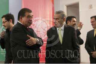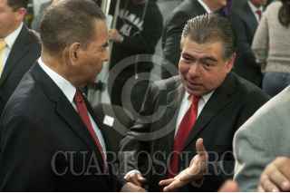 MÉXICO, D.F., 15MARZO2013.- Humberto Treviño Benítez, Procurador General del Consumidor conversa con Mario Alberto Di Constanzo, presidente de la Comisión Nacional para la Protección de la Defensa de Usuarios Financieros (Condusef) al finalizar la conferencia de prensa en la Procuraduría Federal del Consumidor para presentar un informe sobre retos y prospectiva que se tienen para el período 2013-2018. FOTO: DIEGO SIMÓN SÁNCHEZ /CUARTOSCURO.COM