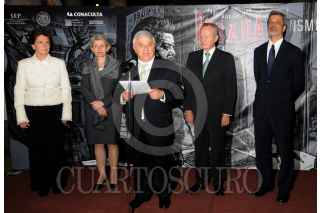 MÉXICO, D.F., 15MARZO2013.- Emilio Chuayffet, secretario de Educación Pública, Rafael Tovar y de Teresa, director del Conaculta, e Irina Bokova, directora general de La Organización de las Naciones Unidas para la Educación, recorrieron el día de ayer la exposición "José Guadalupe Posadas. Transmisor" en el Museo Nacional de Arte. FOTO: ARTURO LÓPEZ /CUARTOSCURO.COM
