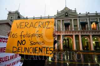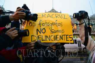 VERACRUZ, VERACRUZ, 15MARZO2013.- Reporteros gráficos de diferentes medios de comunicación de la capital del estado de Veracruz, se manifestaron contra la represión a la libertad de expresión que priva en la entidad. FOTO: RUBEN ESPINOSA /CUARTOSCURO.COM