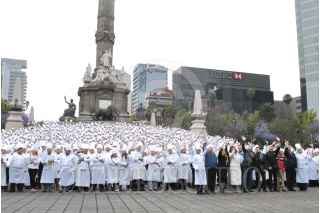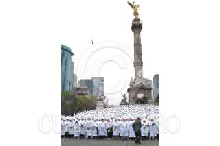 MÉXICO, D.F., 16MARZO2013.- En el Ángel de la Independencia se reunieron miles de chefs para intentar romper el "Récord Guinness de Chefs", durante esta actividad el fotógrafo Virro Borja realizó una toma aérea de la conglomeración de los chefs. Al evento asistieron Miguel Torruco, Secretario de Turismo DF; la diputada Elizabeth Vargas y el CEO de Editorial Agueda, Víctor Hugo Rodríguez. Al no batir el Récord, faltando 511 personas, los asistentes se contentaron con hacer un "Harlem Shakes" FOTO: JOYCE GARCÍA /CUARTOSCURO.COM