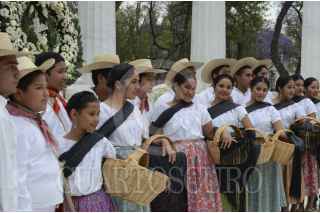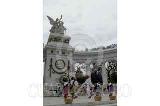 MÉXICO, D.F., 16MARZO2013.- En el Hemiciclo a Juárez la secretaría de Relaciones Exteriores realizó una ceremonia con motivo del próximo aniversario del natalicio del Benemérito de las Américas Benito Juárez, quien fue originario de San Pablo Guelatao Oaxaca. El grupo representativo de danza de Santa María Huatulco Oaxaca ofreció el baile representativo de esta región "la chilena". FOTO: SANDRA PÉREZ /CUARTOSCURO.COM