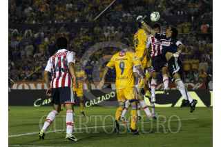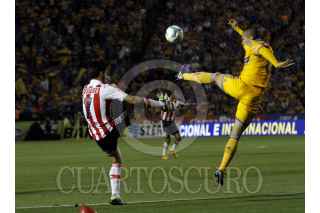 MONTERREY, NUEVO LEÓN, 16MARZO2013.- Los tigres de la UANL recibieron en la jornada 11 a las chivas del Guadalajara, al medio tiempo el visitante lleva ventaja de 1-0. Miguel Sabah se encargó del primer gol y el empate de los locales fue obra de Damián Álvarez. FOTO: GABRIELA PÉREZ MONTIEL /CUARTOSCURO.COM