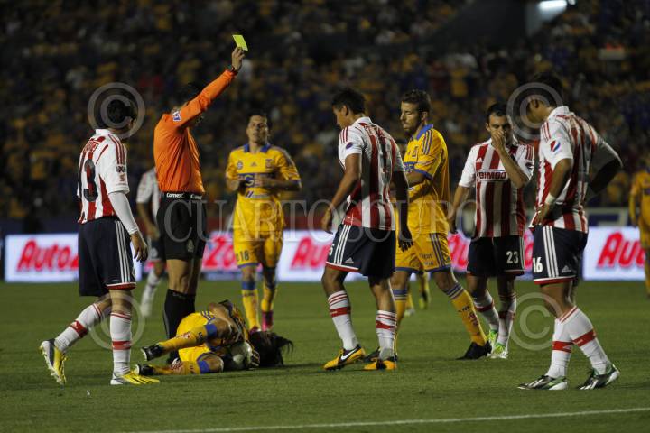 MONTERREY, NUEVO LEÓN, 16MARZO2013.- Los tigres de la UANL recibieron en la jornada 11 a las chivas del Guadalajara, al medio tiempo el visitante lleva ventaja de 1-0. Miguel Sabah se encargó del primer gol y el empate de los locales fue obra de Damián Álvarez. FOTO: GABRIELA PÉREZ MONTIEL /CUARTOSCURO.COM