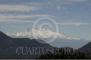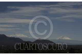 MÉXICO, D.F., 17MARZO2013.- Luego de tener días nublados esta mañana amaneció el cielo despejado por lo que se pudieron apreciar los volcanes Iztaccíhuatl y Popocatépetl, que debido a las bajas tempreaturas amanecieron cubiertos de nieve. FOTO: IVÁN MÉNDEZ/ CUARTOSCURO.COM