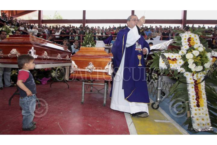 NATIVITAS, TLAXCALA, 17MARZO2013.- En la Unidad Deportiva nativitas se ofició una misa de cuerpo presente para 13 de las 17 víctimas de una explosión ocurrida el pasado viernes en Jesús Tepactepec. FOTO: JORGE LEZAMA /CUARTOSCURO.COM