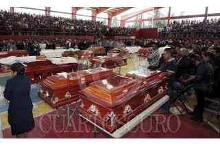 NATIVITAS, TLAXCALA, 17MARZO2013.- En la Unidad Deportiva nativitas se ofició una misa de cuerpo presente para 13 de las 17 víctimas de una explosión ocurrida el pasado viernes en Jesús Tepactepec. FOTO: JORGE LEZAMA /CUARTOSCURO.COM