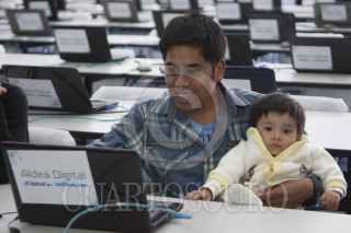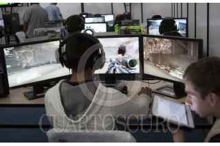 MÉXICO, DF., 18MARZO2013.- Continúa la exposición Aldea Digital en la plancha del zócalo capitalino. Jóvenes se acercan a la tecnología utilizando juguetes bélicos. FOTO: IVÁN STEPHENS /CUARTOSCURO.COM