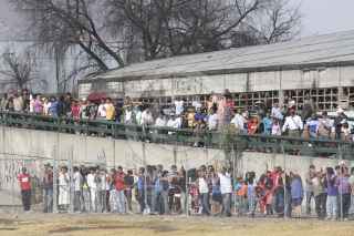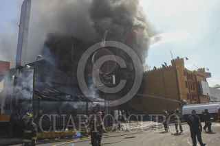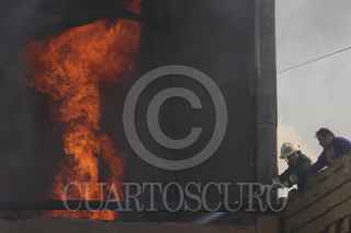 LOS REYES LA PAZ, 18MARZO2013.- Bomberos de los municipios Los Reyes La Paz, Ixtapaluca y del Distrito Federal, sofocaron un incendio que calcinaron por completo el bar “La Cabaña”, localizado en la calle San Francisco 107. En el lugar se localizaron casquillos percutidos calibre 223 y 9 milímetros, versiones extraoficiales señalaron que presuntamente al lugar arribaron vehículos, con hombres que descendieron y rociaron de combustible e incendiaron el inmueble. En la imagen curiosos observaron el incencendio. FOTO: SAÚL LÓPEZ /CUARTOSCURO.COM
