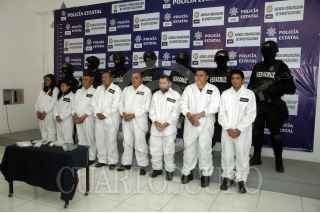 XALAPA, VERACRUZ, 18MARZO2013.- Este lunes,la procuraduría General de Justicia del Estado, presentó a 8 sujetos, entre ellos 2 mujeres, responsables del asesinato del ex alcalde de Soledad de Doblado, Enrique Marín Lara, quien fue ejecutado el pasado 22 de febrero cuando se dirigía a una bodega de agroquímicos localizada en la localidad Paso de las Pintas. Dentro de los implicados en los hechos se ubican a elementos de la policía municipal y transito de dicho municipio. FOTO: TONA NAVARRO / CUARTOSCURO.COM