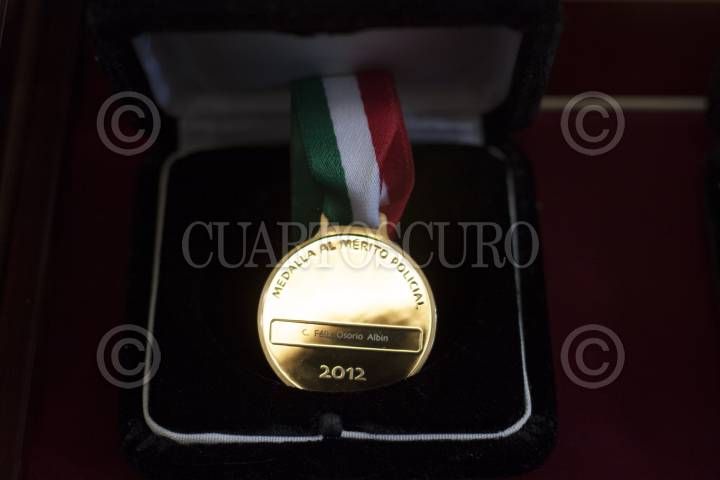 MÉXICO, D.F., 19MARZO2013.- El agente Cynthia Vázquez Martínez recibe su reconocimiento "Medalla Mérito Policial 2012" de parte de Manuel Granados Covarrubias, presidente de la Comisión de Gobierno de la Asamblea Legislativa del DF, en la sesión solemne realizada en este recinto. FOTO: MOISÉS PABLO /CUARTOSCURO.COM