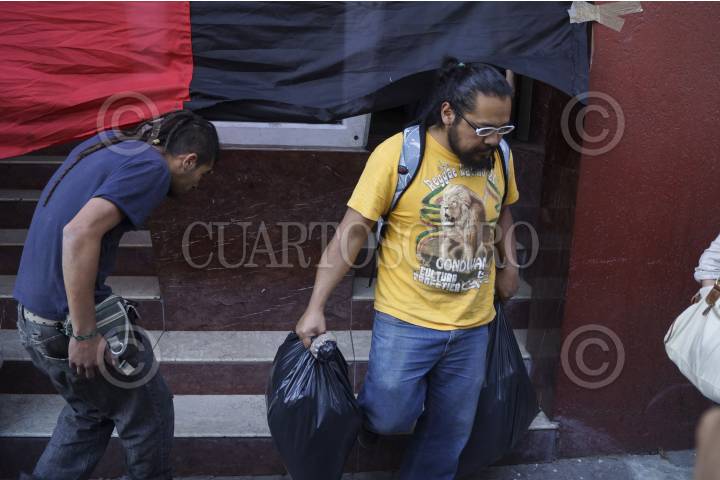 MÉXICO, D.F., 19MARZO2013.- Estudiantes integrantes del Consejo Estudiantil en Lucha (CEL), de la Universidad Autónoma de la CIudad de México, quienes mantenían tomada las instalaciones administrativas de la UACM, entregaron las oficinas a miembros del Consejo Universitario y al rector, Dr. Enrique Dussel. FOTO: ADOLFO VALTIERRA /CUARTOSCURO.COM