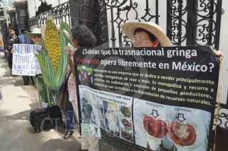 MÉXICO, D.F., 20MARZO2013.- Integrantes de diversas organizaciones sociales y campesinas se manifestaron en la oficina del Alto Comisionado para las Naciones Unidas en México, para solicitar que se pronuncié en contra de la posible entrada de las transnacionales Monsanto, Pioneer-DuPont y Dow, para la siembra comercial, de consumo y de exportación de maíz transgénico NK-603 en México. FOTO: ADOLFO VALTIERRA /CUARTOSCURO.COM