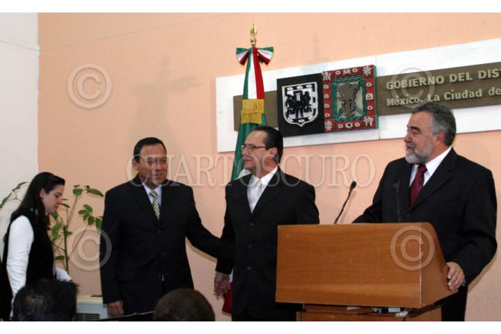 MEXIOC, D.F. 03AGOSTO2005.- Al centro, Alejandro Encinas, jefe de Gobierno capitalino presentó a su nuevo equipo de trabajo, durante la primera conferencia que ofrece con el nuevo cargo, entre ellos se encuentran Jesús Zambrano, Ricardo Ruiz, Rocio González y Yari Hernández. FOTO: Sandra Perdomo/CUARTOSCURO.COM