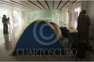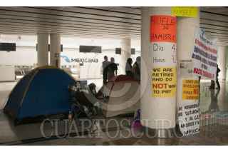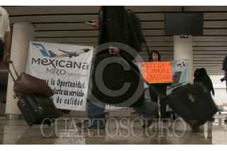 MÉXICO, D.F., 21MARZO2013.- El 28 de Agosto de 2010, Compañia Mexicana de Aviación suspendio sus operaciones de manera indefinida y entró a Concurso Mercantil, esto debido a las perdiadas que la aerolínea venía arrastrando desde hace unos años atrás. A poco más de dos años de mantener la suspensión, un grupo de Sobrecargos y jubilados iniciaron una huelga de hambre en los antiguos mostradores de la Terminal 1 para que se resuelva el conflicto que dejó sin trabajo a poco mas de 200 mil trabajadores. FOTO: FRANCISCO RODRÍGUEZ /CUARTOSCURO.COM