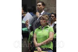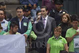 MÉXICO, D.F., 21MARZO2013.- El diputado local del Partido Verde Ecologista, Jesús Sesma Suárez y el secretario general del Partido, Samuel Rodríguez, encabezaron una protesta a las afueras de la Asamble Legislativa del Distrito Federal, junto con simpatizantes de dicho partido, para exigir que no se abandone el suministro de agua en colonias que escazean de esta. FOTO: PEDRO ANZA /CUARTOSCURO.COM