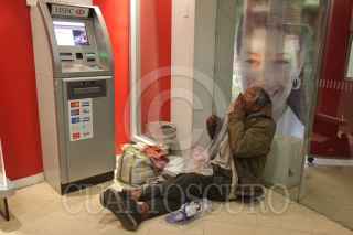 MÉXICO, D.F, 21MARZO2013.-Un indigente come sobras recogidas en la basura y se refugia del frio en un cajero bancario de la colonia Roma. Según el Censo "Tu también cuentas IV" (2011-2012), realizado por el Instituto de Asistencia e Integración Social (IASIS) de la Secretaría de Desarrollo Social del Gobierno del D.F., el 52 por ciento de los indigentes se concentran en las Delegaciones Cuauhtémoc y Venustiano Carranza. Siendo Cuauhtémoc en la que se encuentran 3 de cada diez. FOTO: JUAN PABLO ZAMORA /CUARTOSCURO.COM