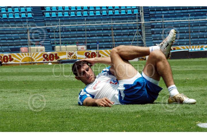 MEXICO, D.F. 03AGOSTO2005.- El jugador de la Maquina Celeste del Cruz Azul Salvador Carmona, durante el entrenamiento en la cancha del estadio azul. FOTO: Osvaldo Aguilar/CUARTOSCURO.COM