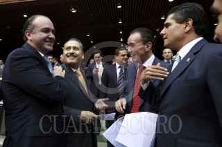 MÉXICO, D.F., 21MARZO2013.- Silvano Aureoles Conejo, PRD y Amalia García, PRD, y Manlio Fabio Beltrones, PRI, en pleno sesión en donde se discute le Ley de Telecomunicaciones. FOTO: CUARTOSCURO.COM