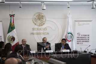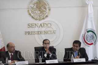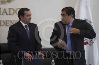 MÉXICO, D.F., 22MARZO2013.- Ernesto Cordero, presidente de la mesa directiva del Senado, y Miguel Barbosa, coordinador de los senadores del PRD, ofrecieron una conferencia de prensa IV Foro de Presidentes de Parlamentos de Países Miembros del G20. FOTO: MOISÉS PABLO /CUARTOSCURO.COM