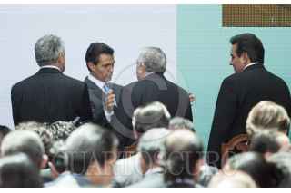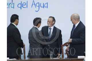 MÉXICO, D.F., 22MARZO2013.- El presidente Enrique Peña Nieto y Arturo Nuñez, gobernador de Tabasco durante el evento del Día Mundial del Agua que se celebró en Palacio Nacional. FOTO: RODOLFO ANGULO /CUARTOSCURO.COM