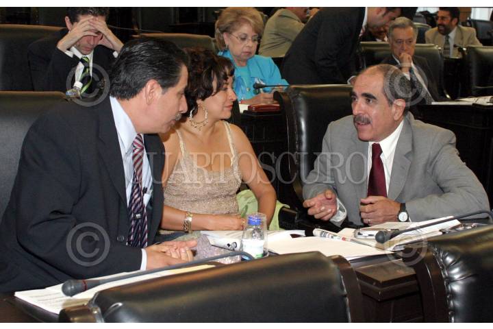 MEXICO, D.F., 03AGOSTO2005.- Carlos Chaurand, senador del PRI, Germán Martínez, diputado del PAN y José González Morfín, diputado del PAN, durante la sesión permanente en el Senado de la República. FOTO: Moisés Pablo/CUARTOSCURO.COM