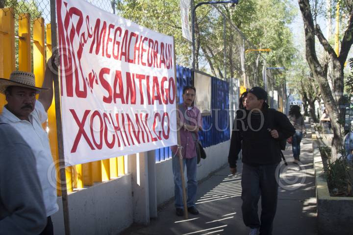 MÉXICO, D.F., 23MARZO2013.- Integrantes de los barrios populares de Xochimilco y adherentes a la Sexta Delcaración de la selva Lacandona, marcharon por el barrio de San Pablo en protesta por la construcción de una tienda departamental "Chedraui" además a las afueras del predio en construcción los manifestantes clausuraron de manera simbólica las obras. FOTO: FRANCISCO RODRÍGUEZ /CUARTOSCURO.COM