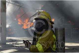 MÉXICO, D.F., 23MARZO2013.- Un incendio se suscitó en la empresa Dupoint ubicada en sobre avenida Caylán y Maravillas en la colonia Ferreria, el fuego dejo una intensa campa de humo en los alrededores. FOTO: LUIS CARBAYO /CUARTOSCURO.COM