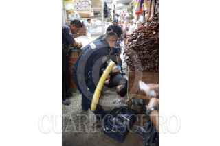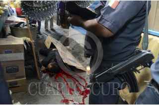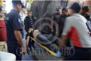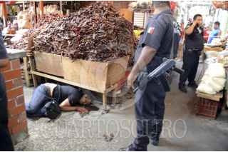 ACAPULCO, GUERRERO, 23MARZO2013.- Asesinan a un líder en el mercado central en las entradas 10 y 11, en la agresión dos personas más fueron baleadas tras protagonizar al parecer un enfrentamiento entre bandas rivales. Domingo Galeana de 40 años, identificado como líder de carniceros del mercado central. Al lugar arribaron policías estatales, federales y ministeriales. Uno de los heridos recibió un balazo en el estomago y fue trasladado grave al hospital. Comerciantes cerraron las cortinas de sus negocios por temor a la balacera. FOTO: BERNANDINO HERNÁNDEZ /CUARTOSCURO.COM