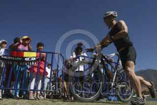 OAXACA, OAXACA, 24MARZO2013.- Tercera edición del triatlón "Salomón 2013" el cual tuvo un recorrido de mil 500 metros en nado, 35 kilómetros en bicicleta de montaña y 21 kilómetros a pie, en total participaron124 personas en las distintas categorías, relevos, libre, máster y juvenil. El recorrido inició en la presa la Azucena en el municipio de San Andrés Huayapam donde hicieron la competencia de nado para después montar las bicicletas y adentrarse en la Sierra Norte y llegar hasta la comunidad de la Never para posteriormente iniciar un descenso a pie. FOTO: ARTURO PÉREZ ALFONSO /CUARTOSCURO.COM