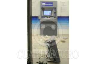 NAUCALPAN, ESTADO DE MÉXICO, 25MARZO2013.- Un cajero robado y dos más dañados de la sucursal BBVA Bancomer, ubicada en avenida Circuito Geógrafos y Circuito Médicos de Ciudad Satélite fue el saldo del saqueo de aproximadamente 10 sujetos encapuchados que fueron captados por las cámaras de vigilancia de esta sucursal captando el momento en que los ladrones sacan los cajeros de su base de concreto apoyados con barretas durante unos 20 minutos sin que fueran molestados por elementos policíacos que tienen su modulo a una calle del lugar. En el lugar fue abandonada la barreta de hierro que fue utilizada para robar dichos cajeros. FOTO: LUIS CARBAYO /CUARTOSCURO.COM