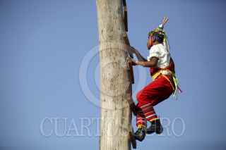 PAPANTLA, VERACRUZ, 25MARZO2013.- Niños y jóvenes voladores de Papantla ofrecen dos vuelos diarios en el parque Takilhsukut con el fin de difundir la tradición de la zona y para mostrar que desde pequeños los voladores realizan este rito. Dicho evento se lleva a cabo en el festival Cumbre Tajín 2013. FOTO: FÉLIX MÁRQUEZ /CUARTOSCURO.COM