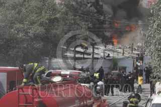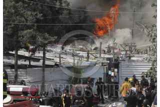MÉXICO, D.F., 25MARZO2013.- Bomberos de la Ciudad de México, y personal del servicios de emergencia sofocaron un incendio de casas de cartón y madera ubicadas en la calle cerrada Cedro y el eje 2 Eulalia Guzman en la delegación Cuahutemoc. FOTO: SAÚL LÓPEZ /CUARTOSCURO.COM