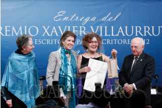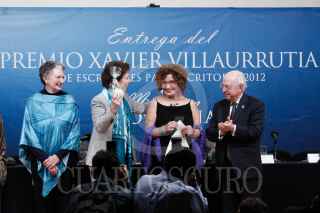 MÉXICO, D.F, 26MARZO2013.- Los escritores Angelina Muñiz-Huberman, María Cristina García Cepeda, directora de Bellas Artes, Myriam Moscona, ganadora del premio Xavier Villaurrutia 2012, y Jaime Labastida durante la entrega del Premio Xavier Villaurrutia 2012 en el salón Manuel Ponce del Palacio de Bellas Artes. FOTO: IVÁN STEPHENS /CUARTOSCURO.COM